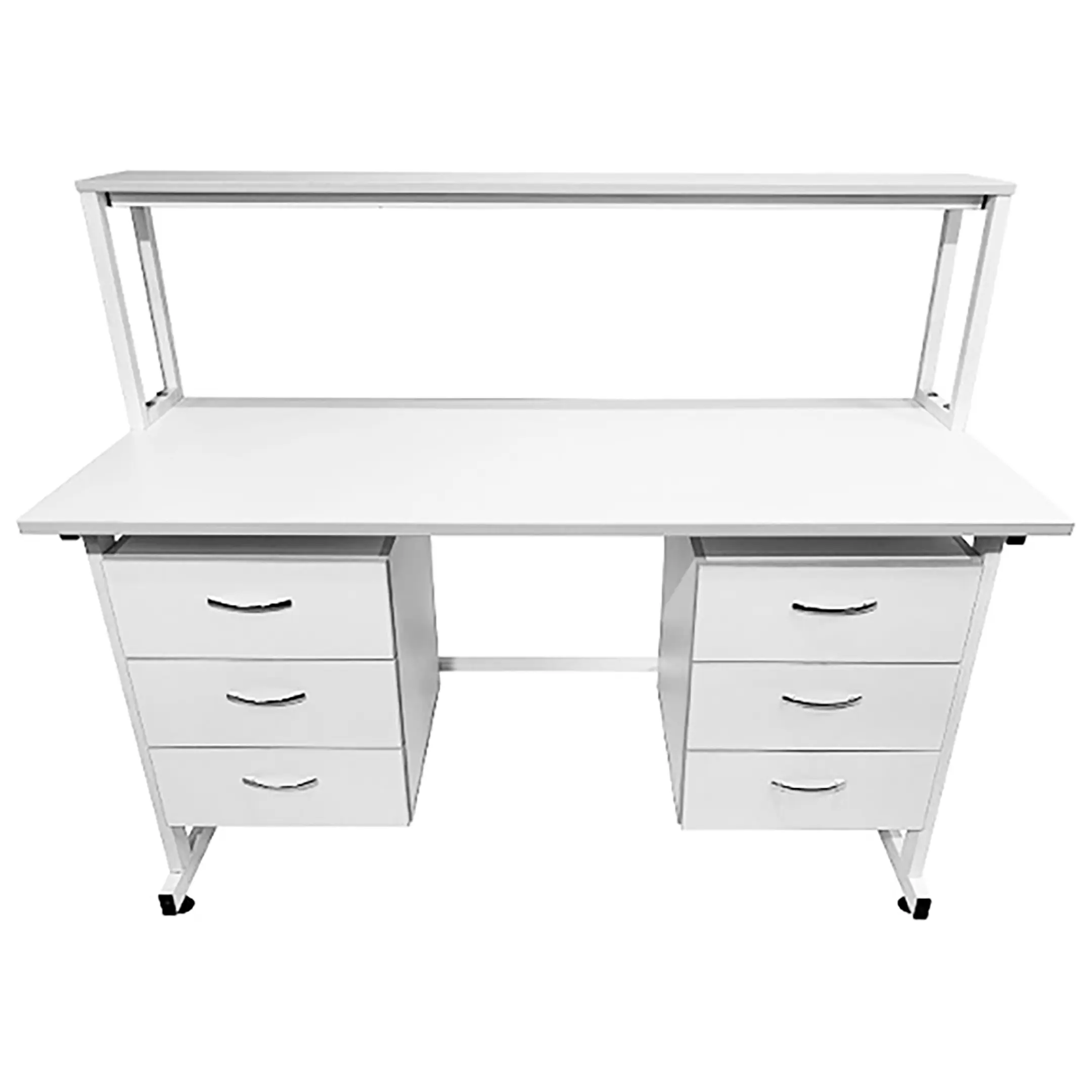 - Вместительная система хранения — две боковые подвесные тумбы, каждая с тремя выдвижными ящиками для удобного хранения материалов и инструментов.