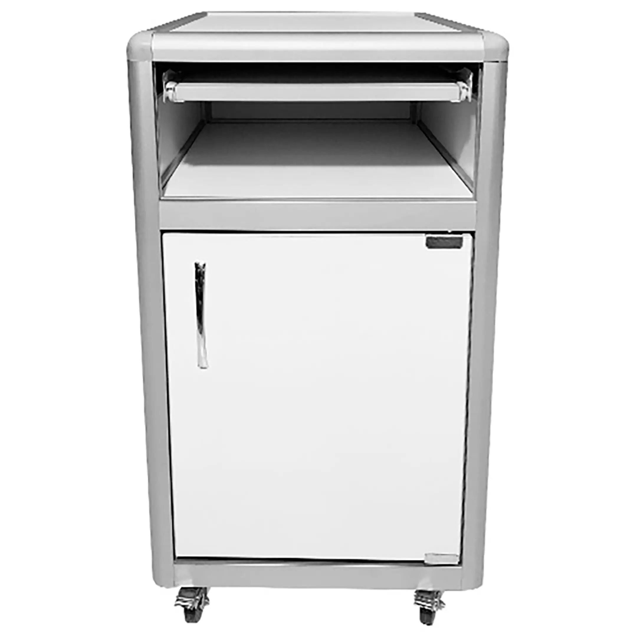 - Функциональная организация — выдвижная полка, открытая ниша и отделение с распашной дверкой и полкой для удобного хранения.