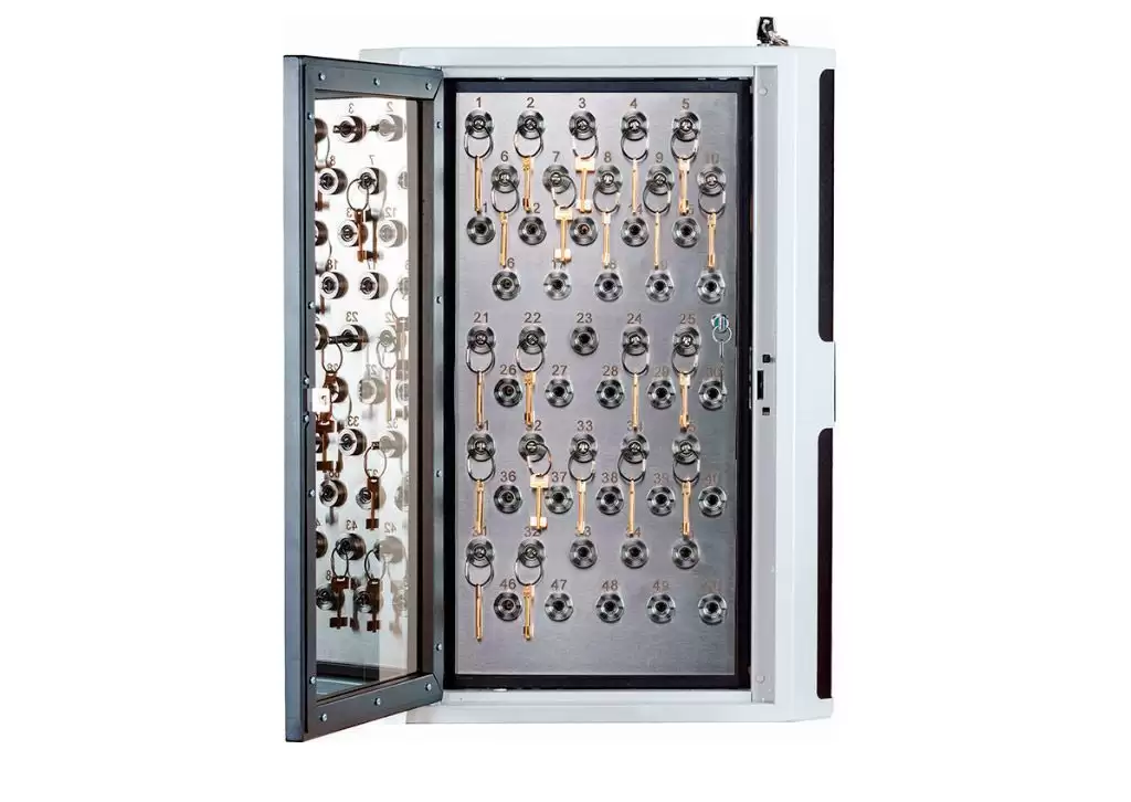- Надежная конструкция и защита от внешних воздействий — прочный корпус и ударопрочное стекло обеспечивают физическую сохранность. В случае перебоев с электропитанием брелоки с ключами остаются заблокированными, а встроенный источник резервного питания поддерживает работоспособность системы и целостность данных.