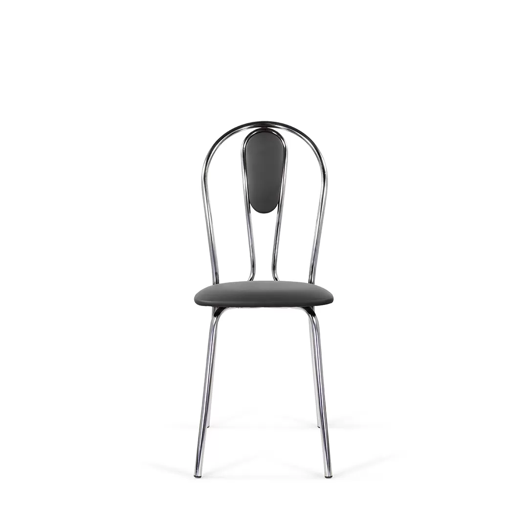 Мягкая вставка на спинке дополняет изящный дизайн стула, что позволяет ему сочетаться с разными интерьерами. Подходит как для домашнего использования, так и для мест общественного питания. Каркас стула выполнен из хромированного металла.