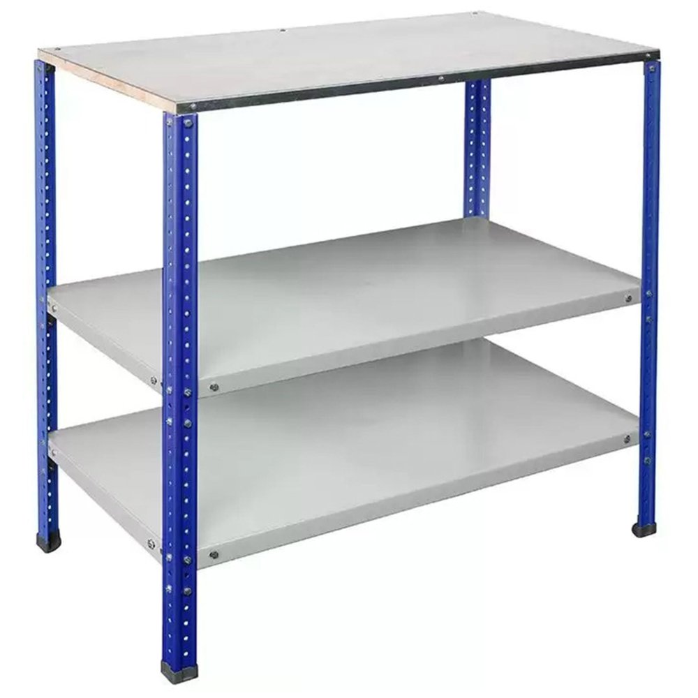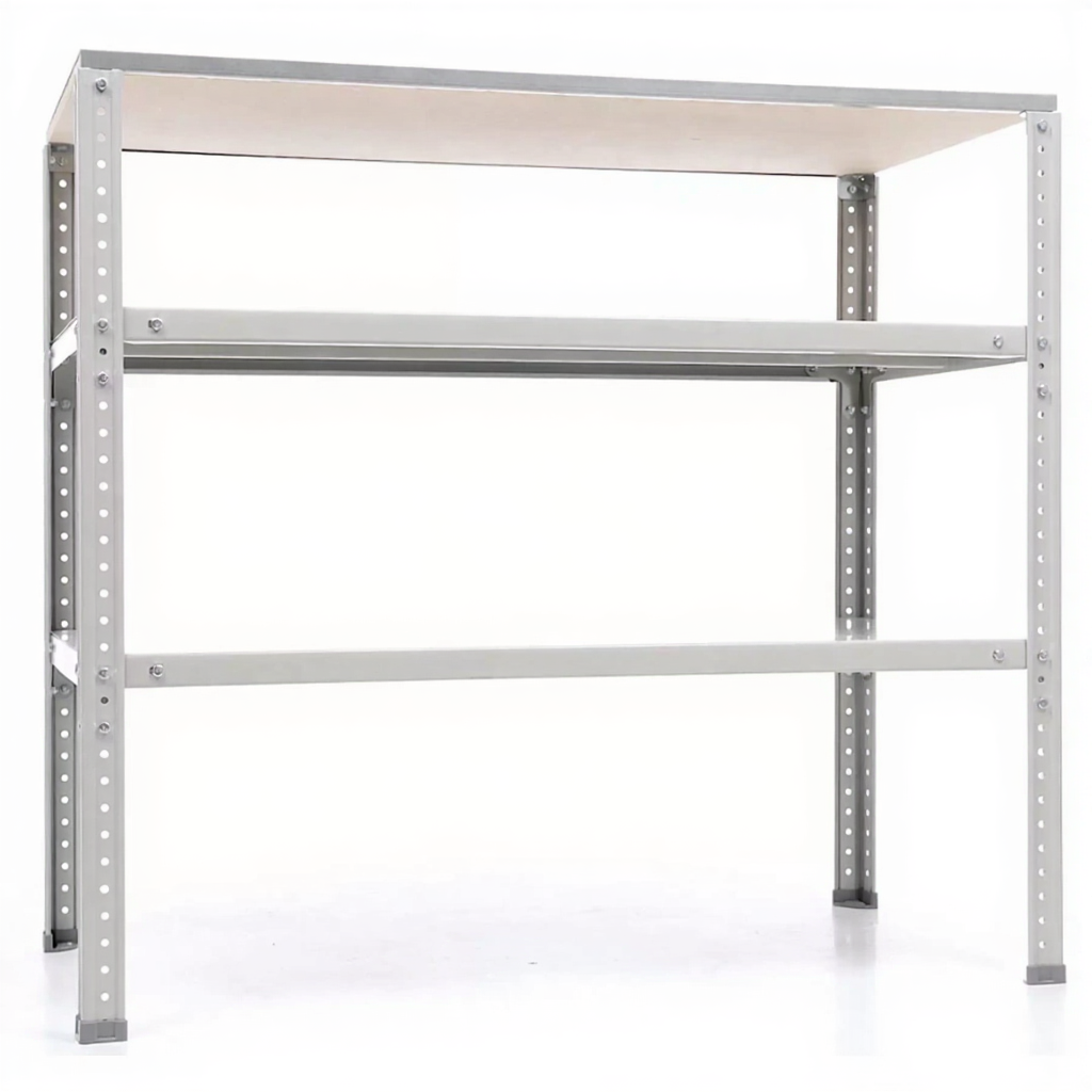 Обратите внимание: стойки верстака окрашиваются в синий цвет (RAL 5002, шагрень), а полки — в серый (RAL 7038, шагрень).