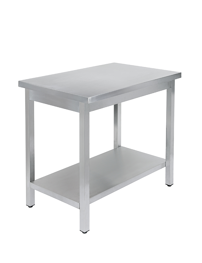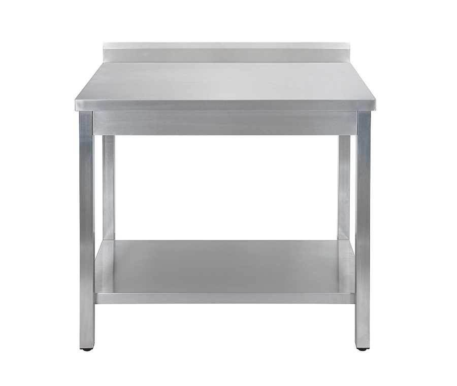 Стол сделан из нержавейки. Усилен дополнительной сплошной полкой. Оснащен съемным бортом, за счет чего ставить его можно и у стены, и посередине производственного помещения.