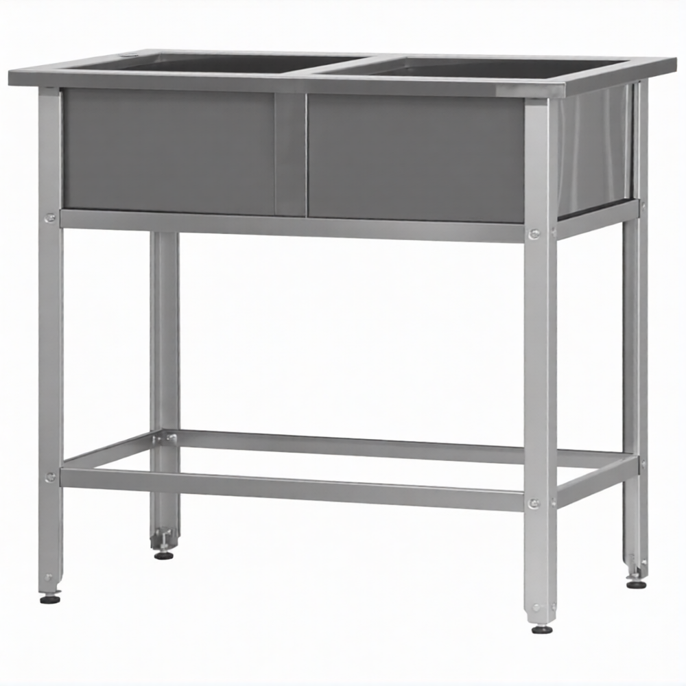 Ванна моечная ВМСн 700/2 2 м/о 600х600х350 (полка с отв., борт; ножка угл.)