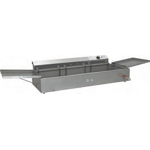 Фритюрница электриеская для чебуреков (чебуречница) настольная с 1 ванной, 2 откидными крышками, аварийным датчиком ограничения температуры предназначена для приготовления пончиков, чебуреков, пирожков и других изделий (кроме продуктов с высоким пенообразованием, например картофеля) в большом количестве фритюра. Внутренний объем ванны - 18л. Площадь поверхности фритюра - 2700см2. Продолжительность разогрева при температуре +200С, не более 15 мин. Длина с откинутой крышкой - 1655мм. Все детали фритюрницы, контактирующие с пищевыми продуктами, выполнены из пищевой нержавеющей стали.