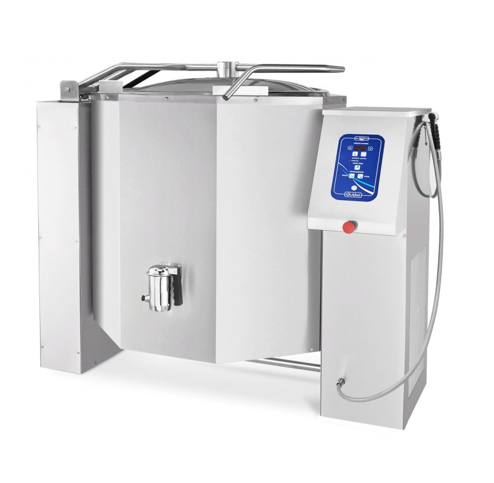 - Температура пароводяной рубашки до 120°С — более интенсивный нагрев для быстрого приготовления.