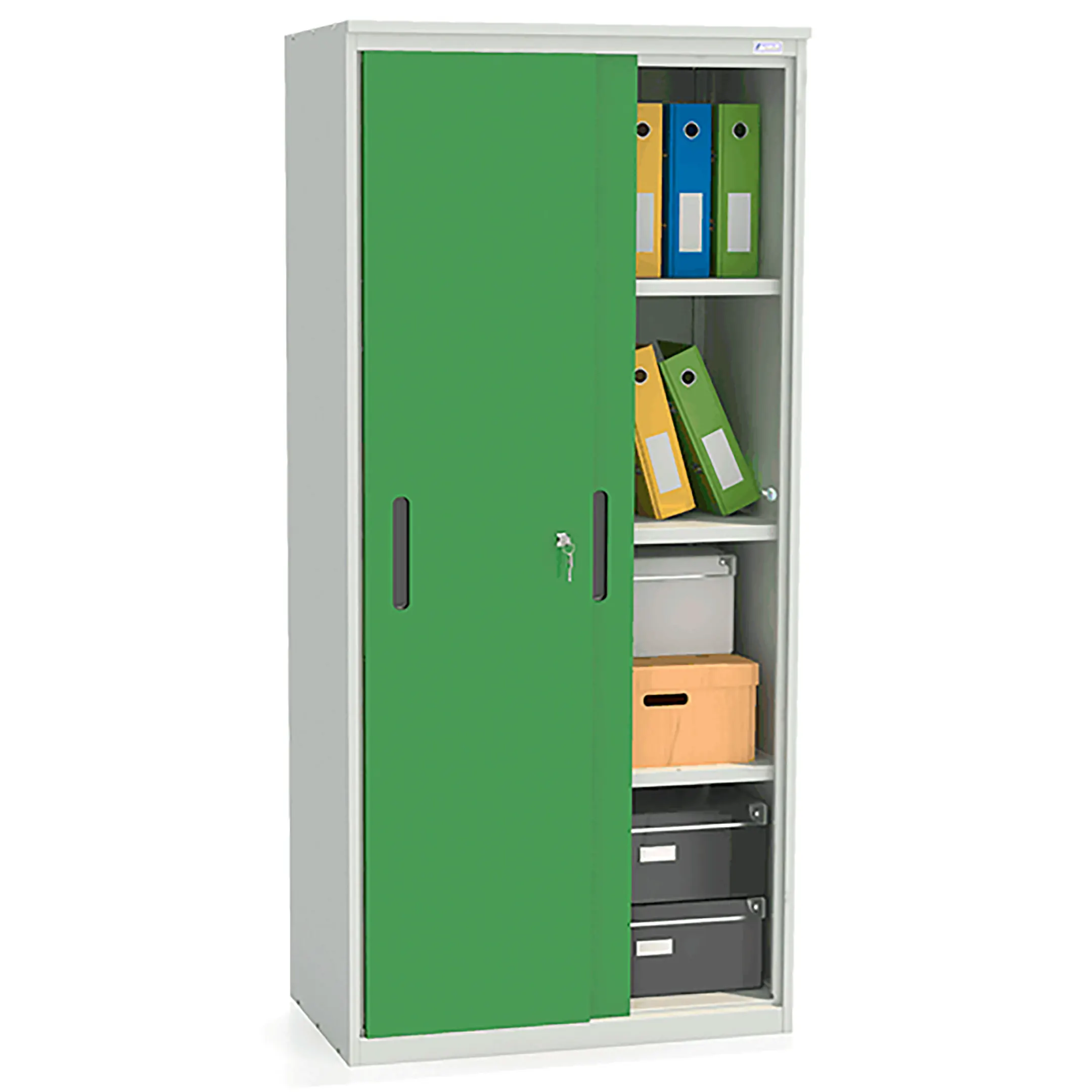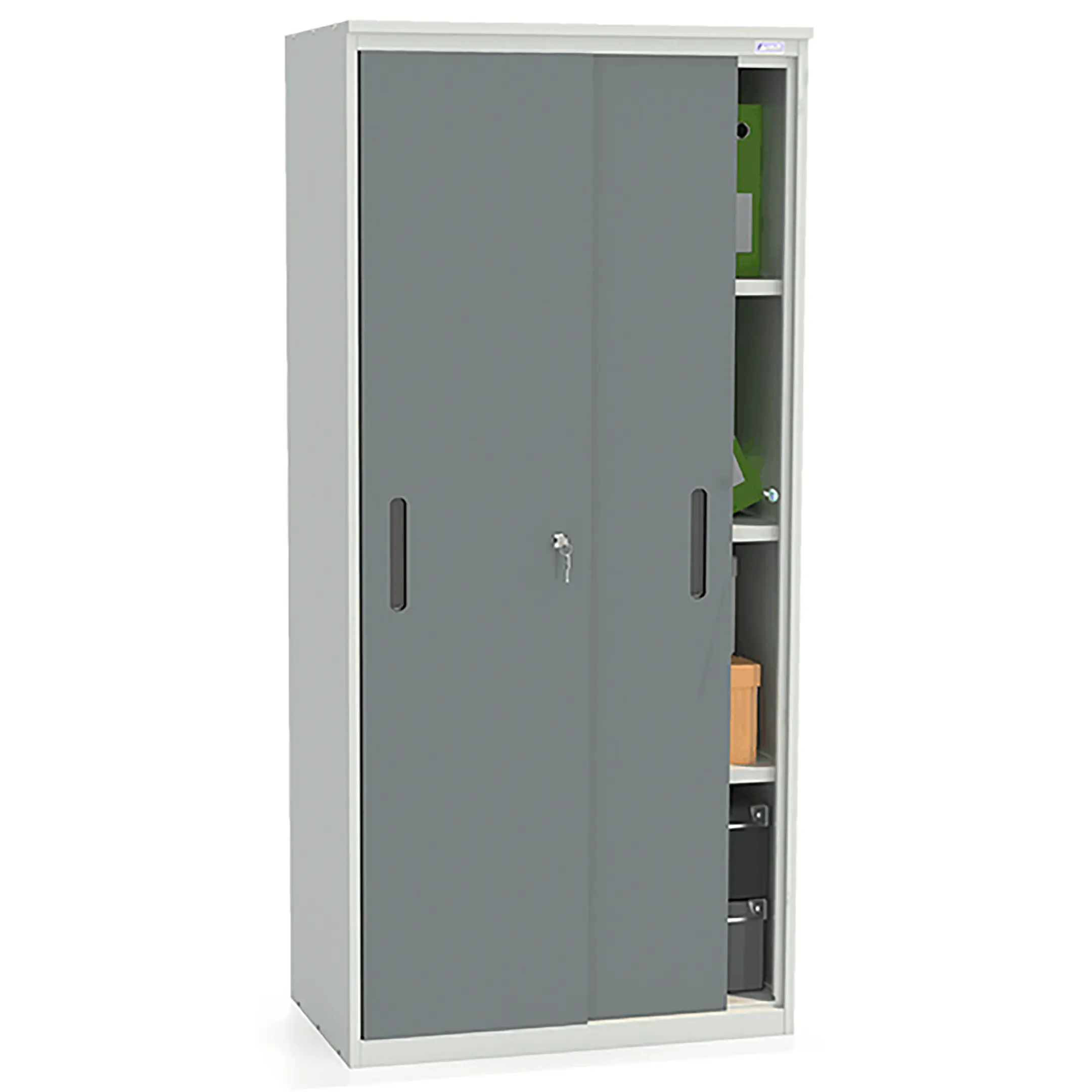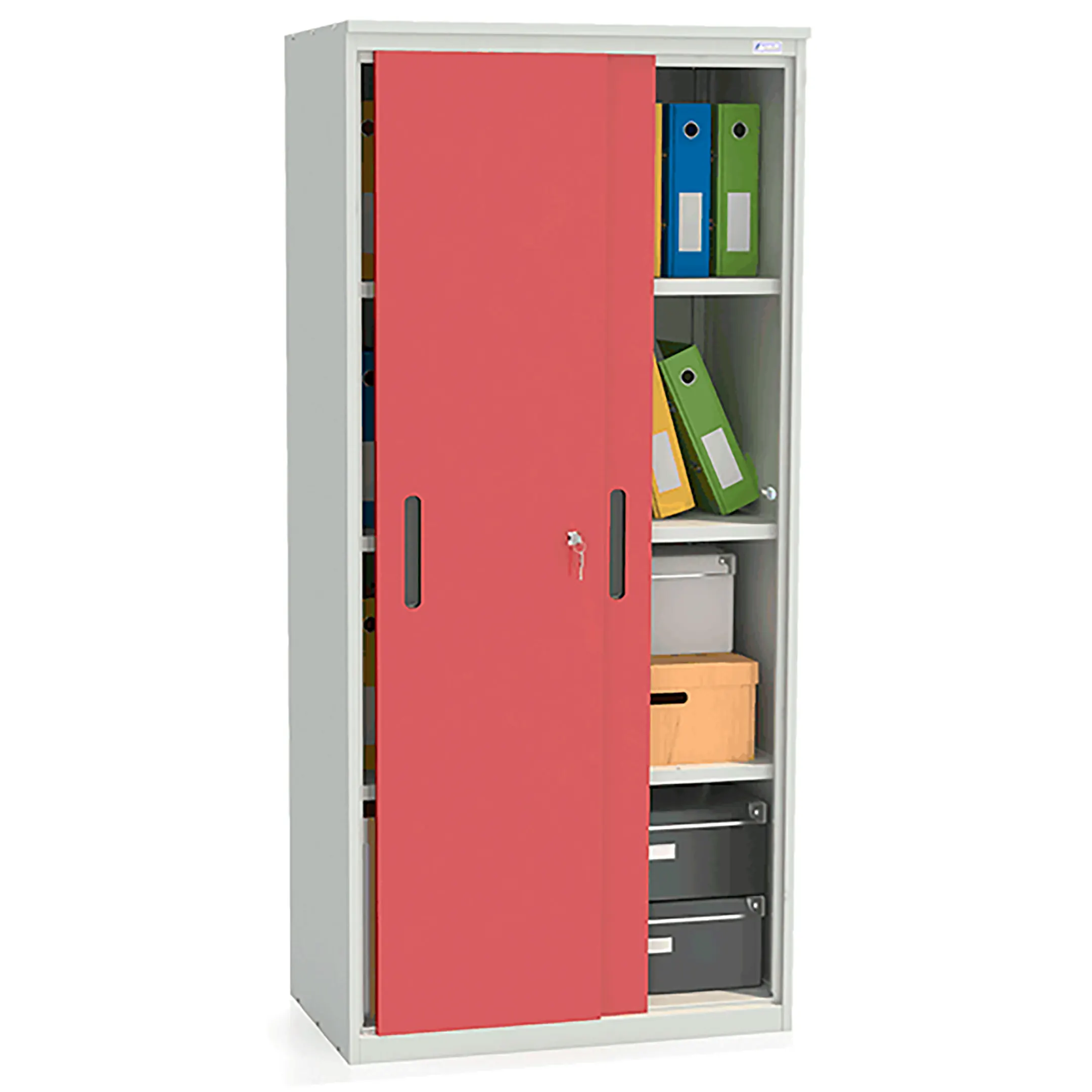 - Удобный доступ и эргономичность — раздвижные двери обеспечивают полный обзор и легкий доступ ко всему содержимому шкафа без необходимости отступать назад. Это делает работу с архивом удобной и быстрой.