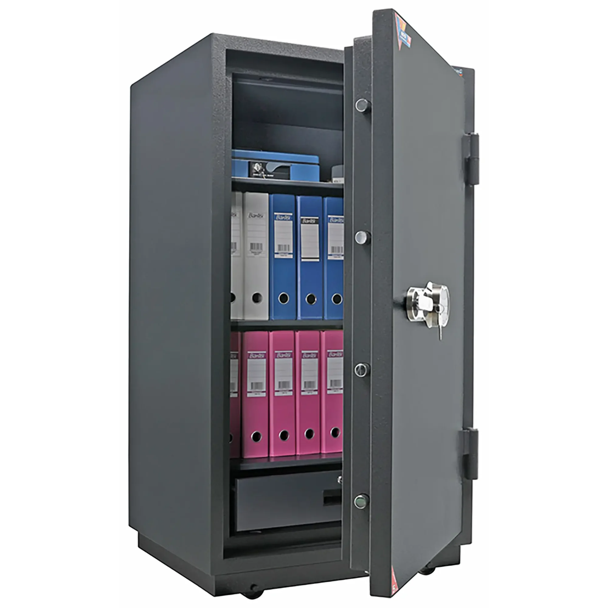 Сейф оснащается замком E-25 со сканером отпечатка пальца.