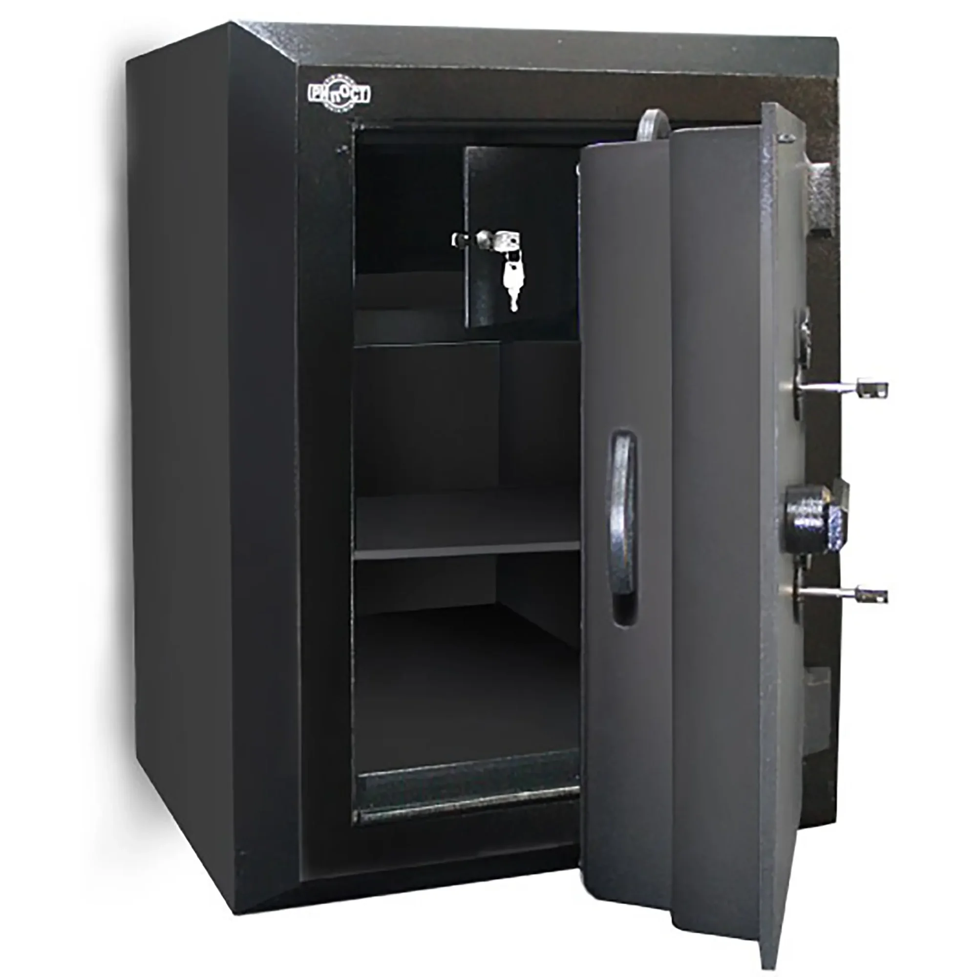 • корпус сейфа имеет усиленный двухслойный сварной стальной каркас, выполненный из листовой стали и заполненный специальным бетоном;