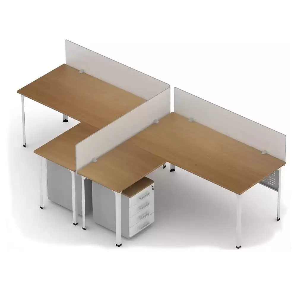 - формируется из 2 столов офисных, 2 столов-приставок, 2 экранов и 3 перегородок;