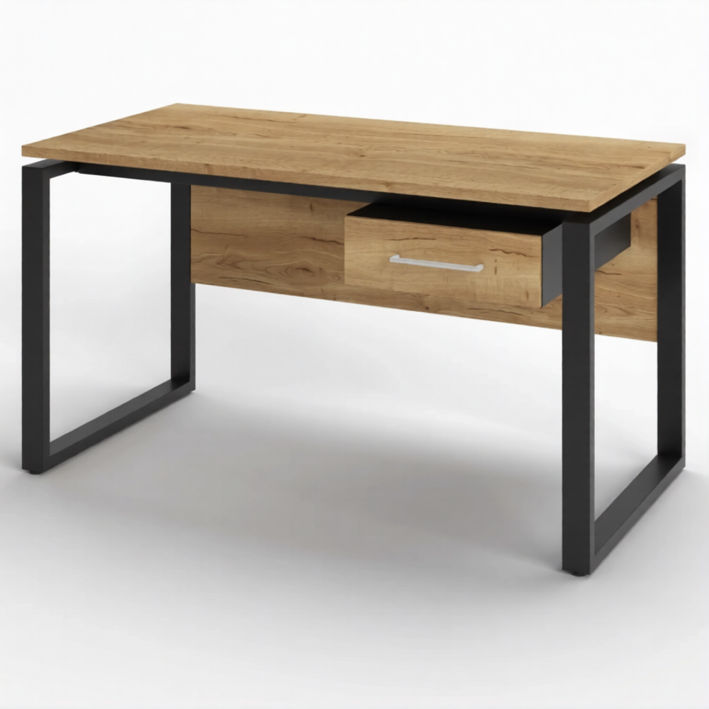 Стол рабочий 1 ящик СрТ-21 (тип 2) (1400х800х750) (столешница ЛДСП дуб вотан, каркас черный)