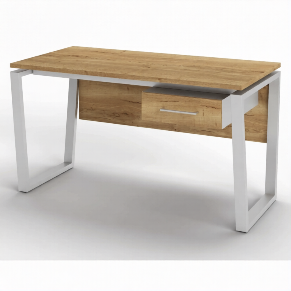 Стол рабочий 1 ящик СрТ-21 (тип 3) (1600х800х750) (столешница ЛДСП дуб вотан, каркас серый)