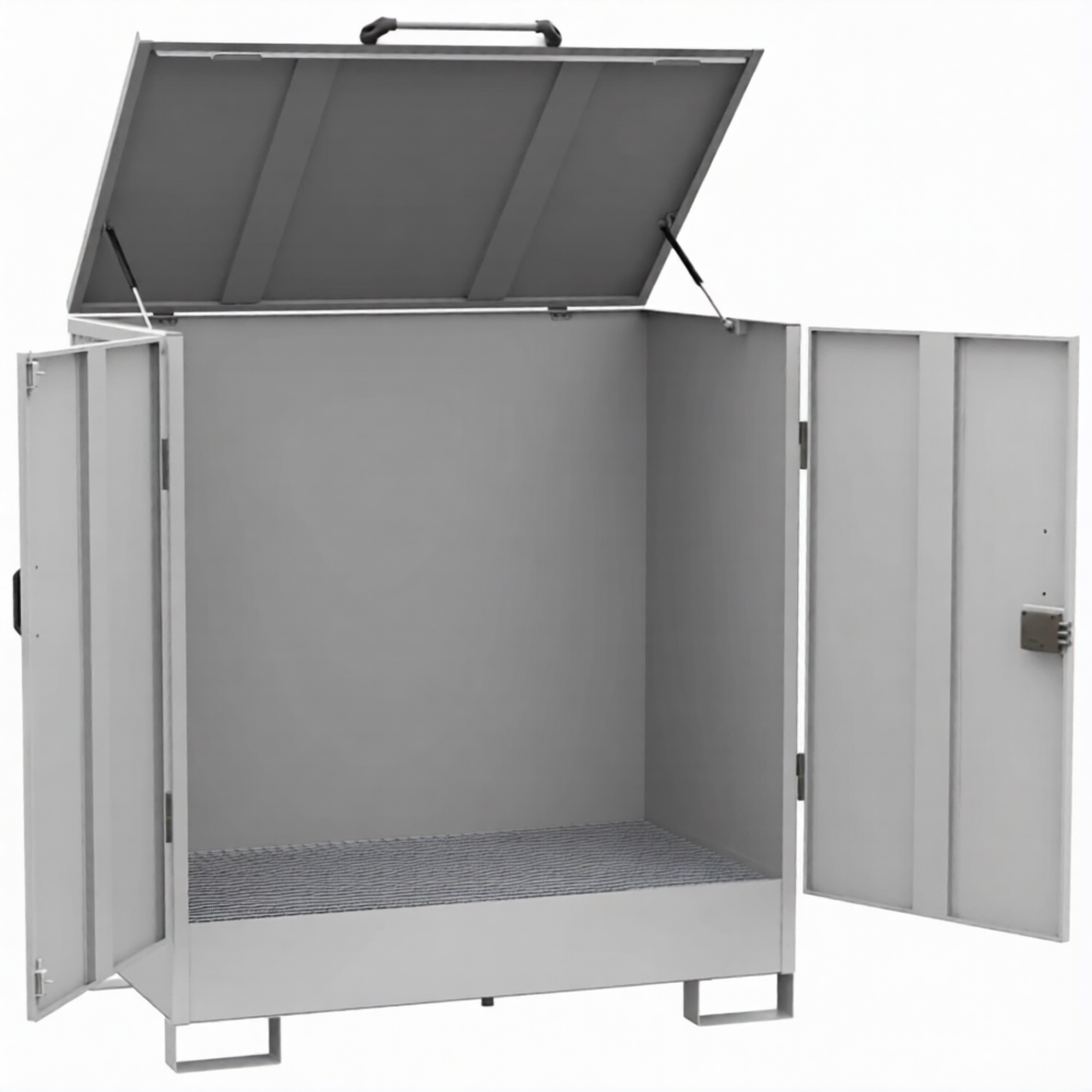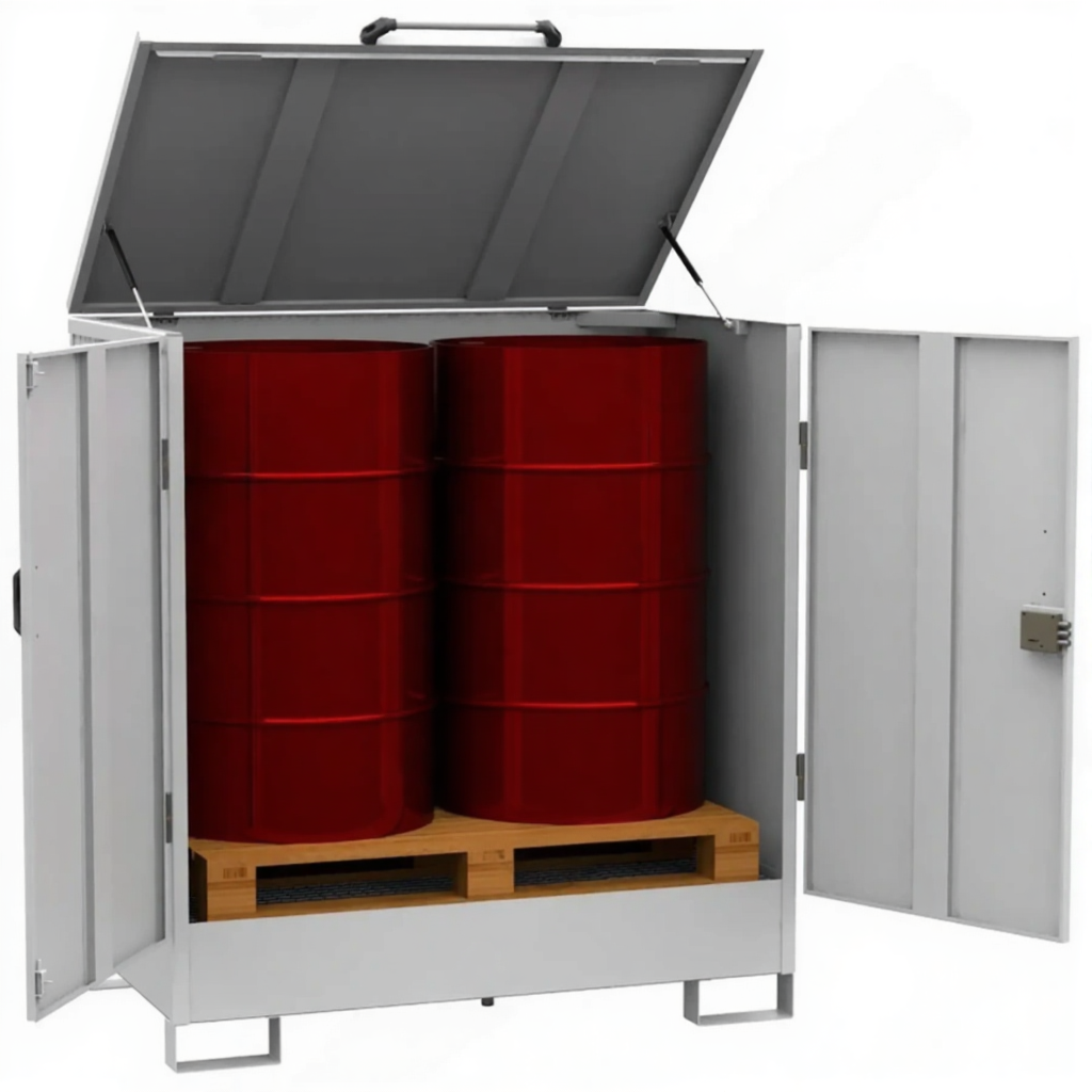 Депо для 2-х бочек, настил ПВЛ, сточный поддон