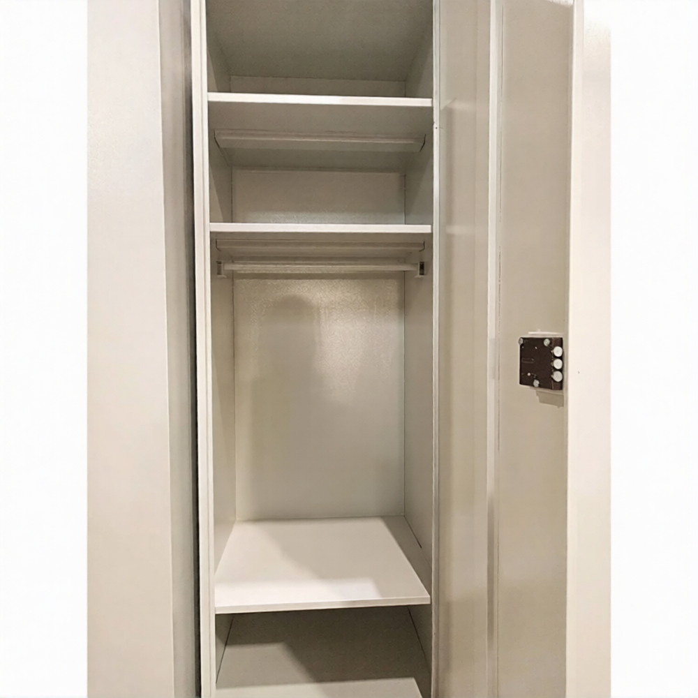 • Шкаф для хранения специальных средств и бронезащиты имеет 1 отделение с 3-мя полками и перекладиной для вешалки.