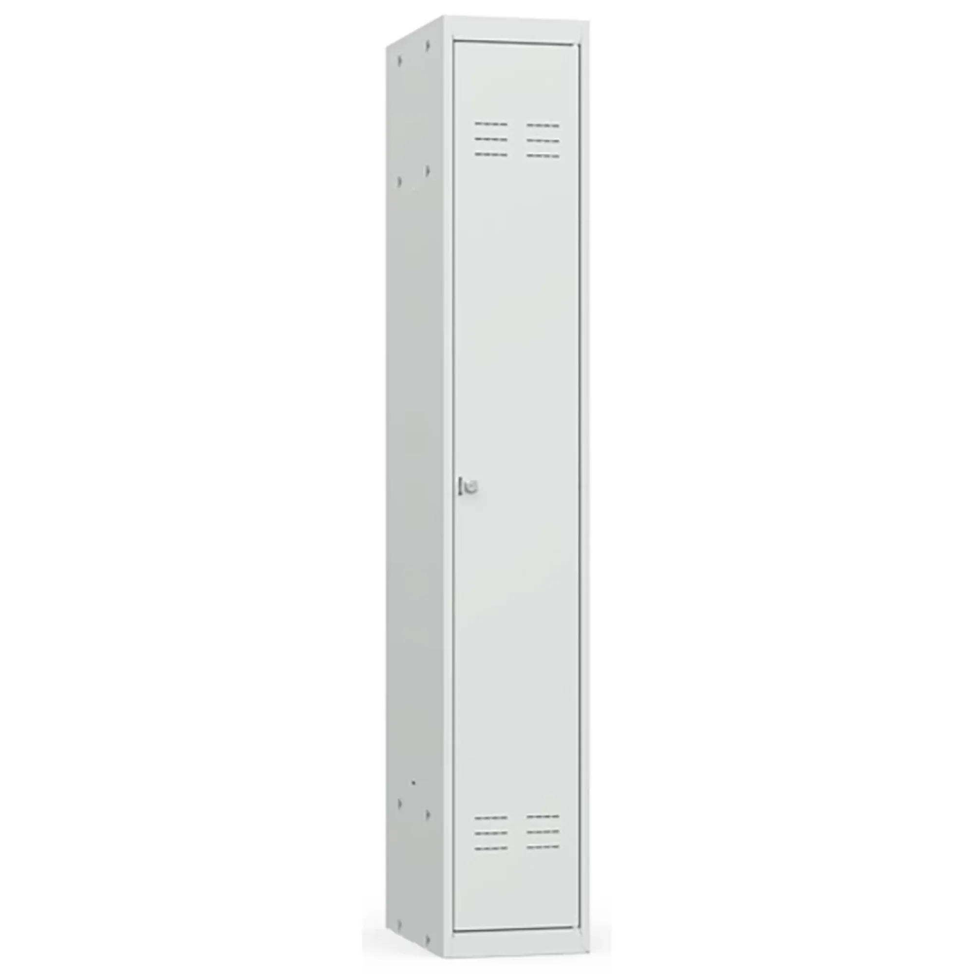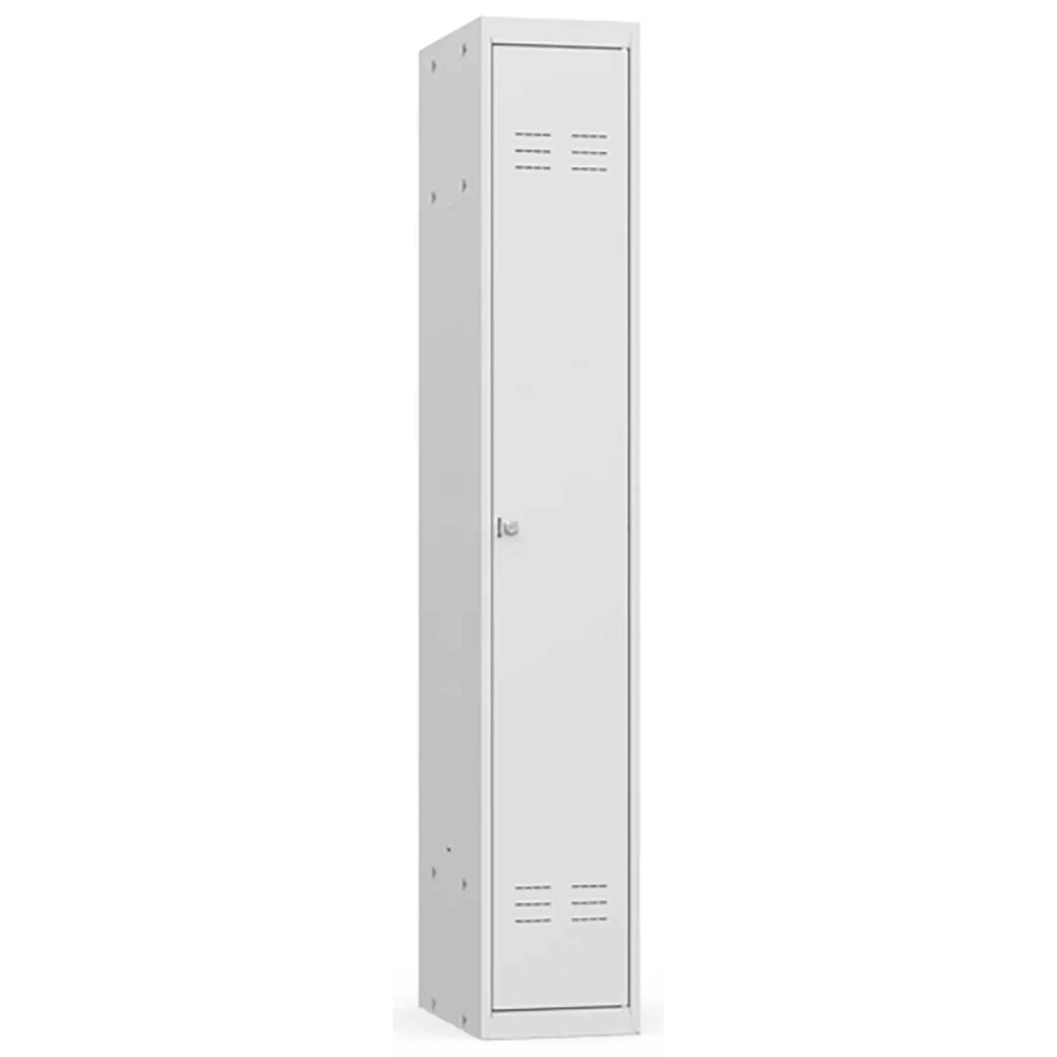 • Односекционный металлический шкаф для одежды имеет полную внутреннюю комплектацию: полку для головных уборов, пластиковые перекладины для вешалок и два крючка для одежды, проушина для навесных замков;
