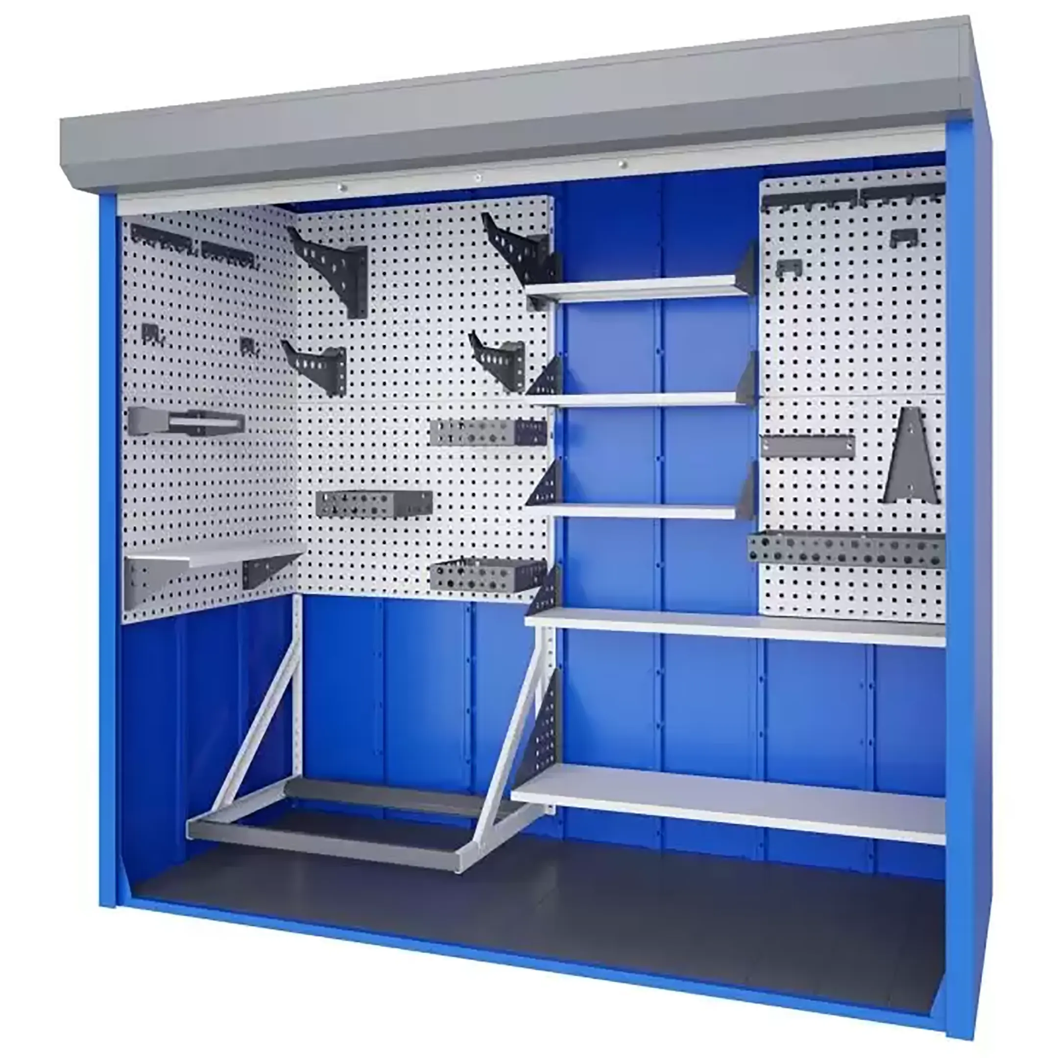 - Оптимальные габариты для крупного инвентаря — высота 2000 мм и ширина 950 мм позволяют удобно хранить вертикально стоящий велосипед (в том числе с высоким рулем), лыжи, сноуборд, садовый инвентарь, чемоданы и другие громоздкие предметы.