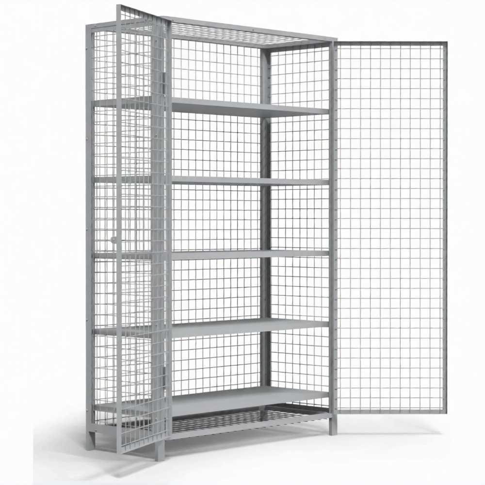 • Металлический сетчатый шкаф - стеллаж предназначен для хранения различного вида спортивного или любого другого инвентаря, товаров, инструментов, любого вида продукции на производствах, складах, предприятиях, в ученых заведениях.