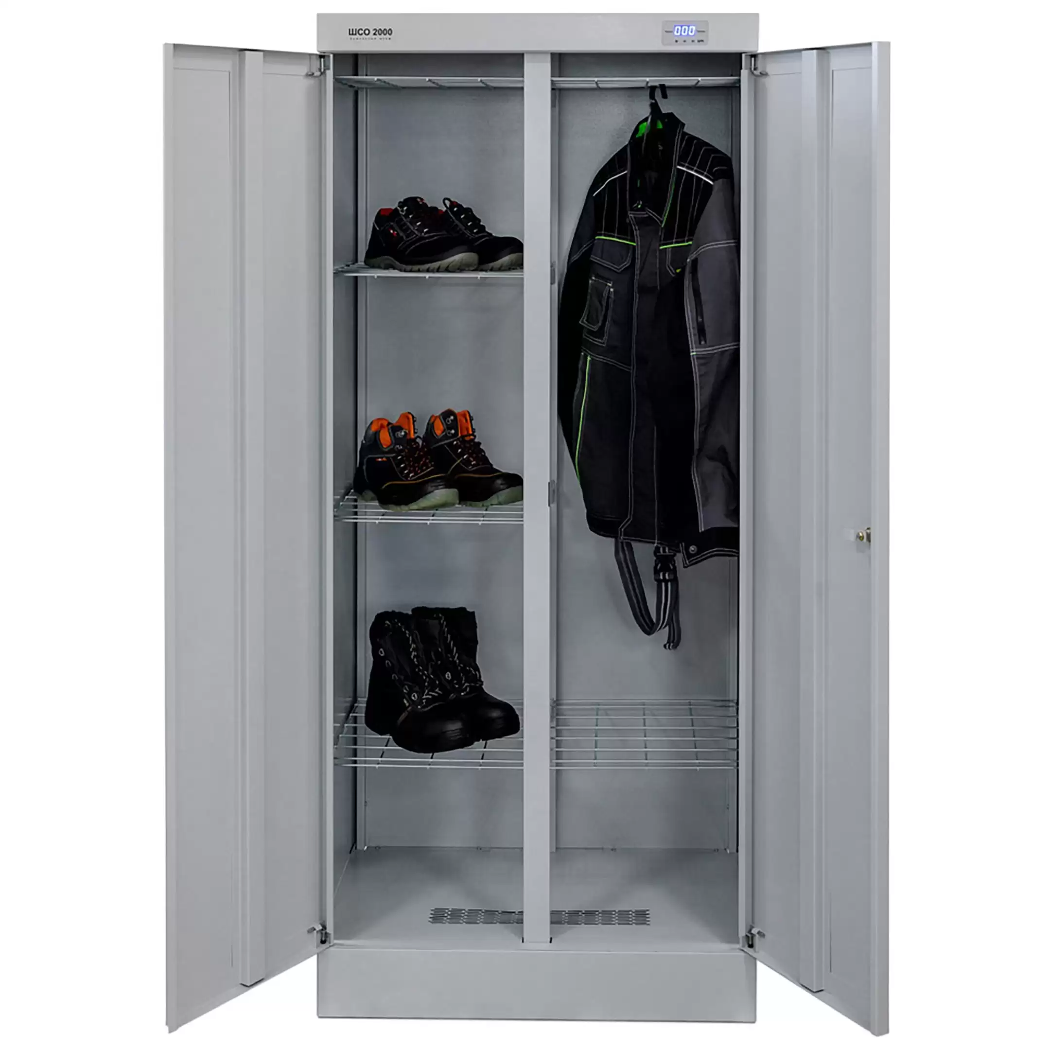 Шкаф сушильный ШСО 2000 — это производительное и надежное оборудование для эффективной сушки рабочей и спортивной одежды, спецодежды, обуви, белья и инвентаря на предприятиях, в медицинских, спортивных учреждениях, гостиницах и учебных заведениях. Модель обеспечивает быструю, равномерную сушку благодаря циркуляции теплого воздуха, способствуя устранению влаги, запахов и поддержанию гигиены.